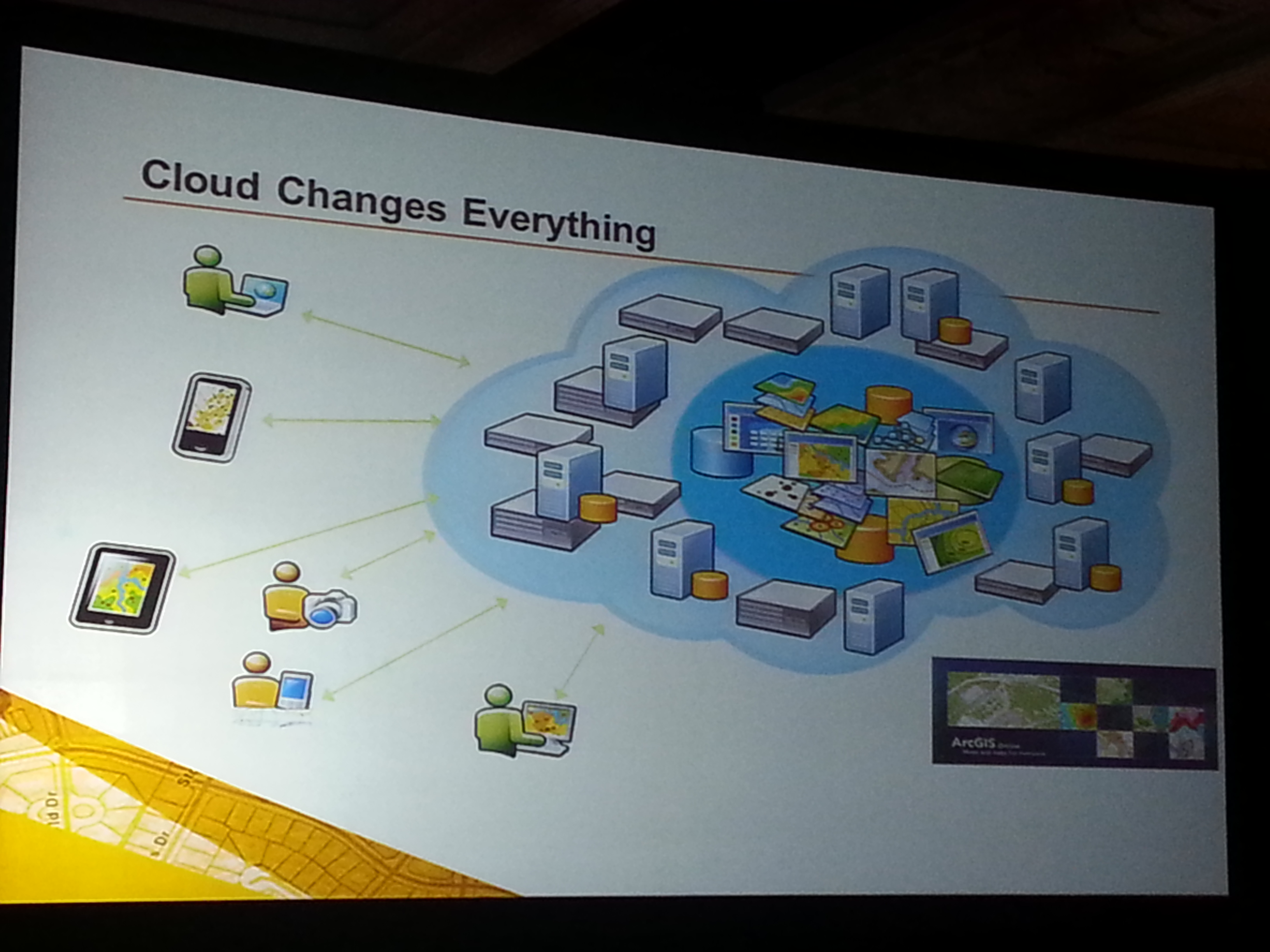 Cloud-based GIS: Esri is pushing cloud-based GIS hard. It’s a significant transformation, and there’s no turning back. During the plenary session, Jack announced that starting with ArcGIS 10.2, each license will also include a subscription to ArcGIS online. The cloud is a natural segue into Big Data.