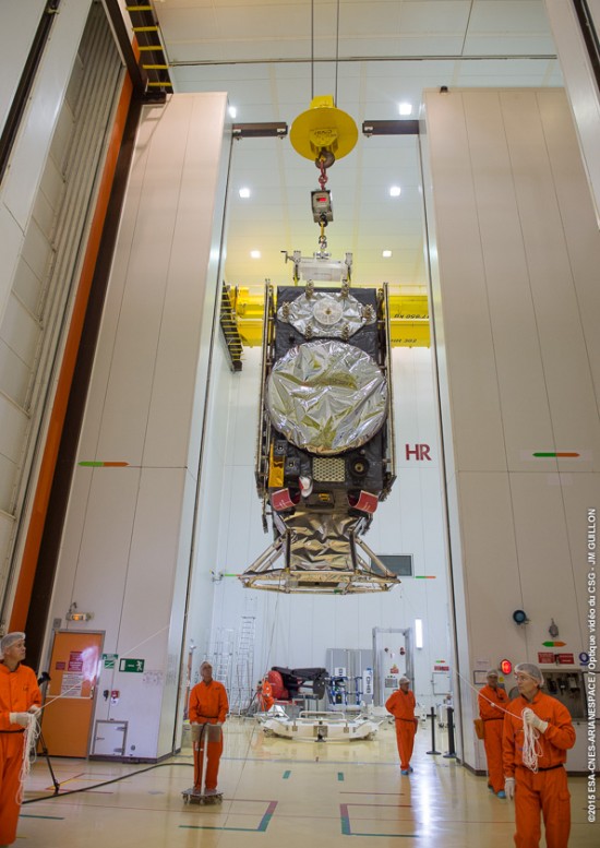 Galileos 9 and 10 are lowered onto the Fregat upper stage.(Credit: CNES/ESA)