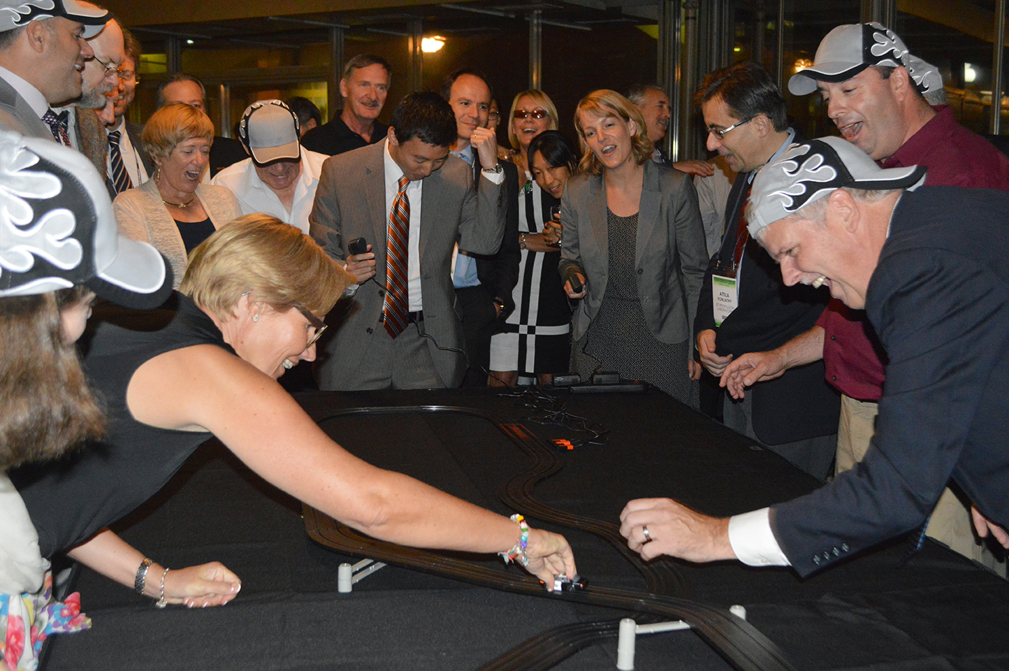 Teams competed at the races, with a driver and pit crews to get cars quickly back on the track after spinouts. Photo: ION GNSS+