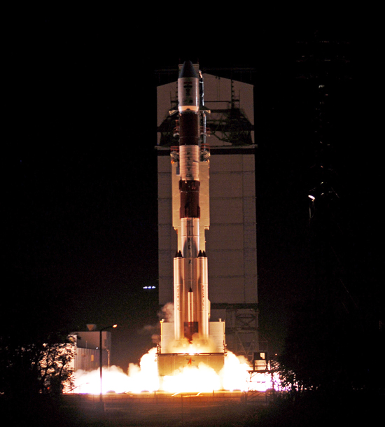 The PSLV-C26, carrying IRNSS-1C, lifts off. Photo: ISRO