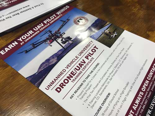 Drone pilot fliers were passed around the show floor. (Photo: Bethany Chambers)