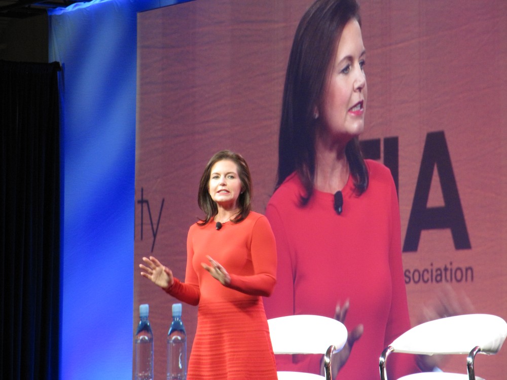 CTIA CEO Meredith Atwell Baker opens Day 2 of CTIA, saying of government regulation "We need engagement not from D.C. but from where you live." Photo: GPS World