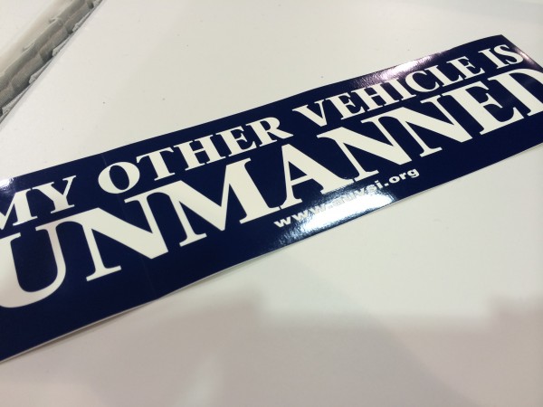 A bumper sticker from the Association for Unmanned Vehicle Systems. Photo: GPS World